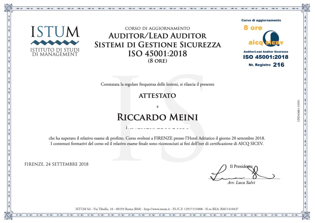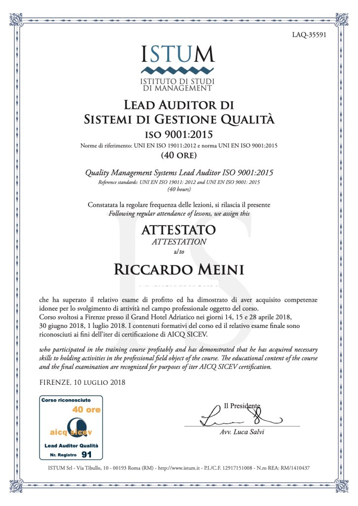 Lead Auditor di Sistemi di Gestione per la Qualità, Sicurezza, Ambiente e Energia