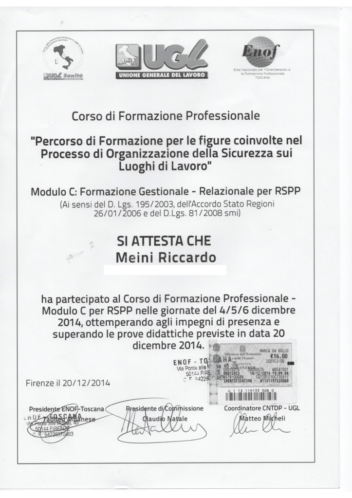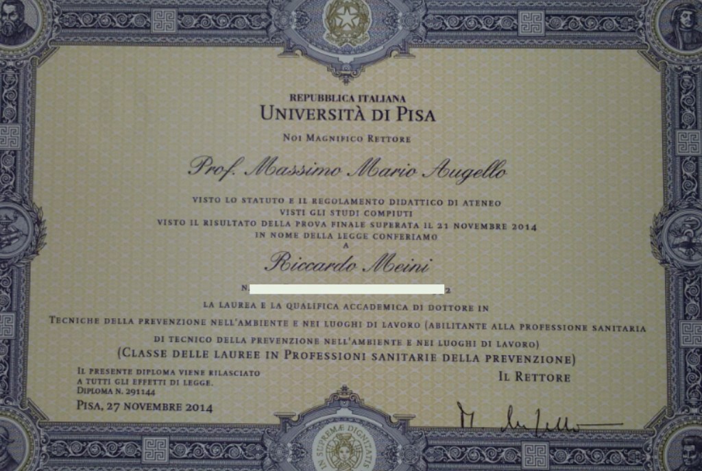 Agrotecnico laureato in Tecniche della Prevenzione nell’ambiente e nei luoghi di lavoro.