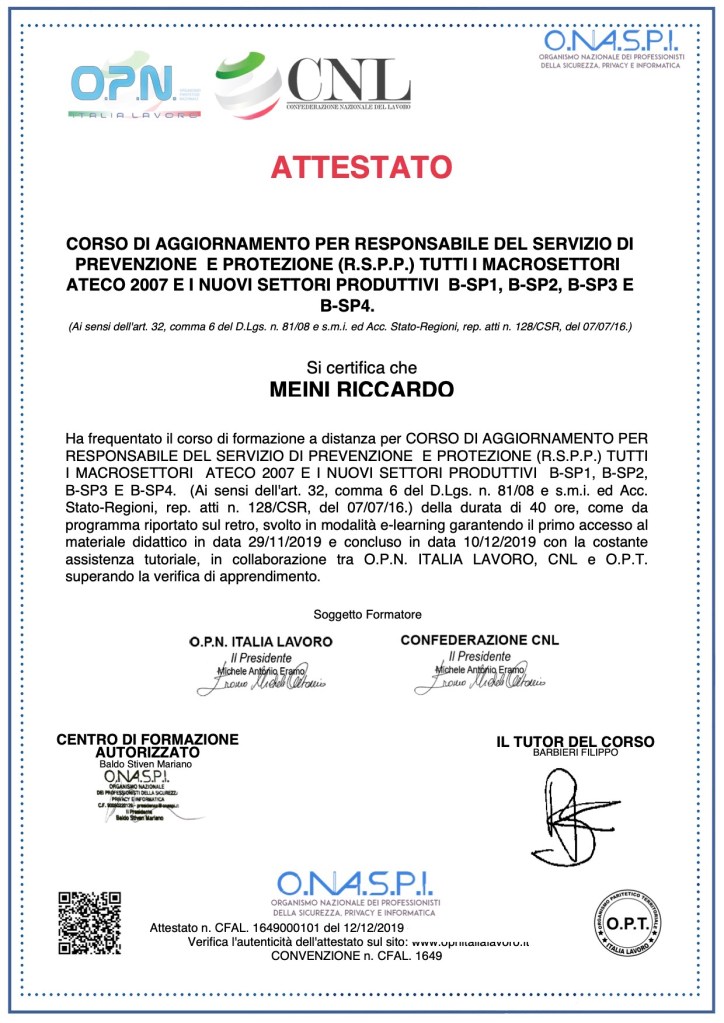 RSPP esterno abilitato per tutti i macrosettori ATECO, con esperienza pluriennale in diversi settori dal rischio basso al rischio alto.